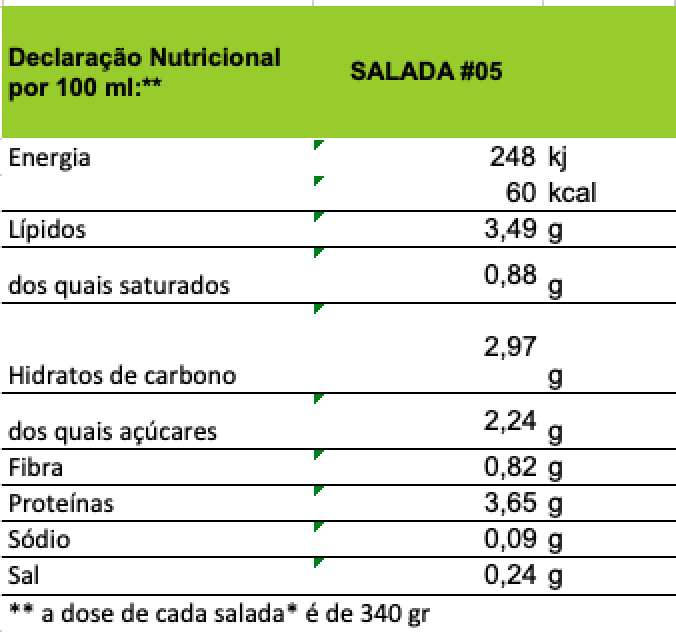 Tabela Nutricional